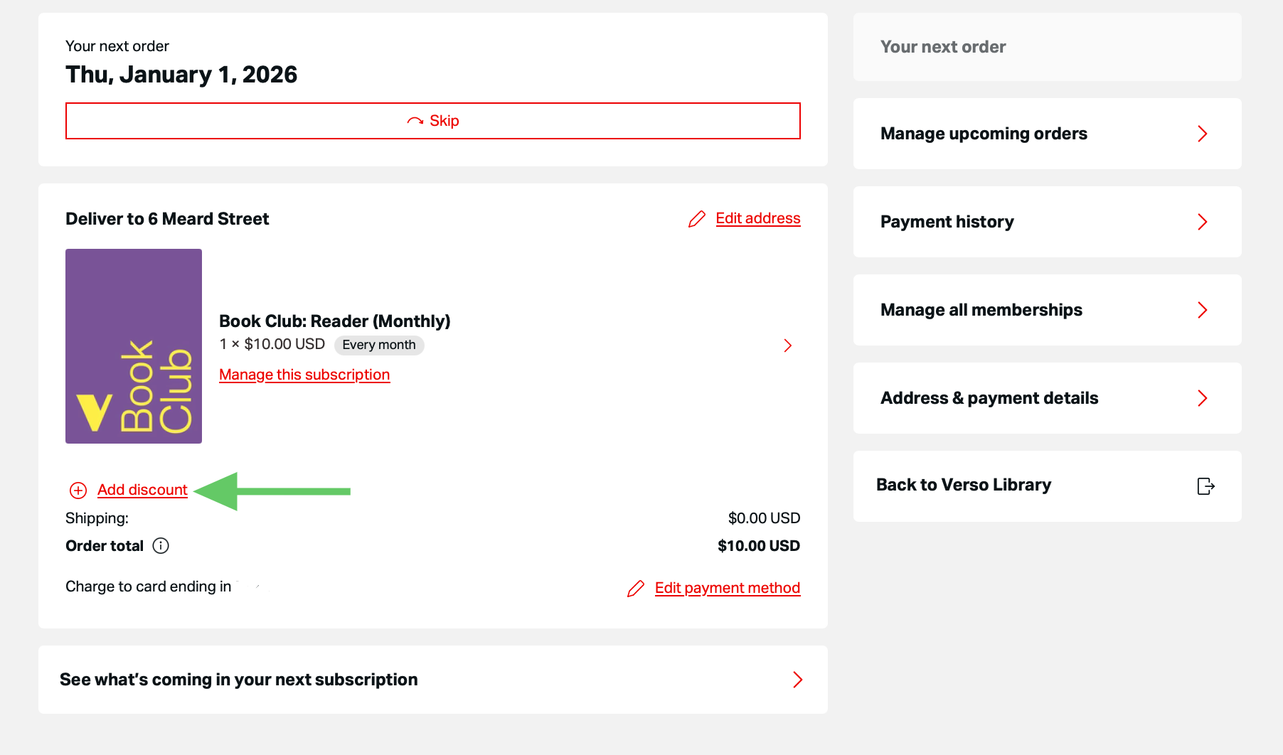 We sometimes offer discounts which you can apply to your active membership. Here's how to do it:
